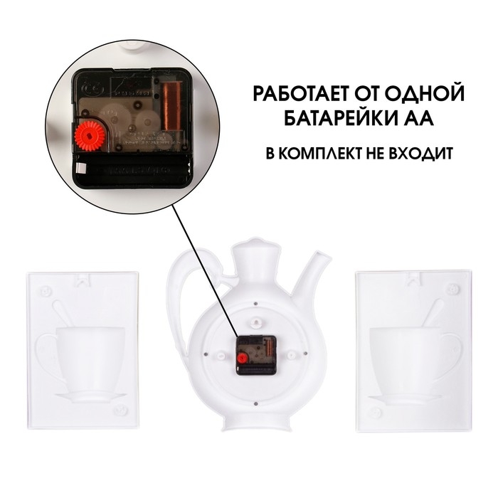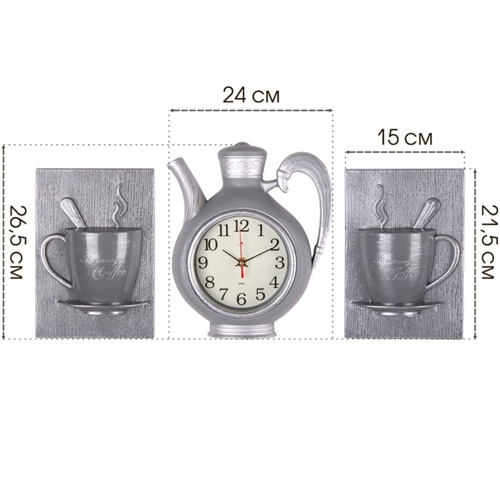 Часы настенные интерьерные для кухни "Чаепитие", бесшумные, чайник 26.5 х 24 см, серые, АА