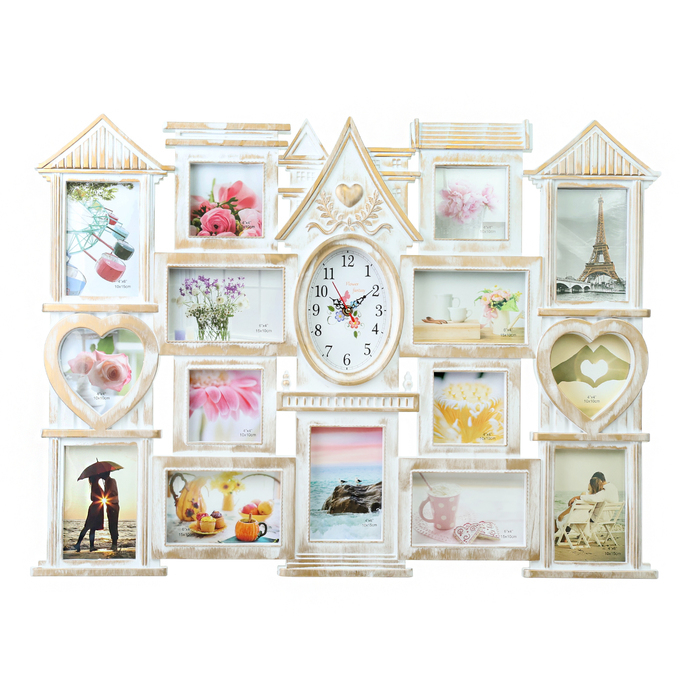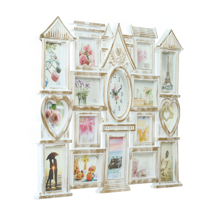 Настенные часы с фоторамками - оригинальный подарок, который никого не оставит равнодушным. Эти часы настоящая находка для тех, кто ценит качество и неповторимый дизайн. Настенные часы - это не только функциональный предмет, но и настоящий декоративный аксессуар, они разнообразят интерьер любой спальни или гостиной, подчеркнут стиль и гармонию вашего дома. Вместе с часами идут 15 рамок для фотографий, сделайте подборку из лучших и любимых фотографий, которые будут напоминать вам о каком-то приятном моменте вашей жизни.