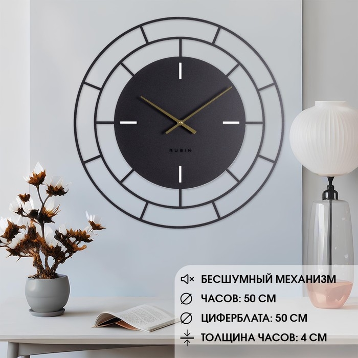 Часы настенные интерьерные из металла "Венеция", бесшумные, d-50 см, чёрные, АА
