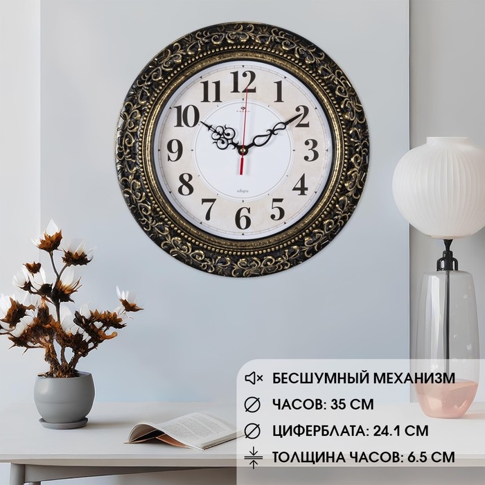 Часы настенные, интерьерные "Классика", бесшумные, d-35 см