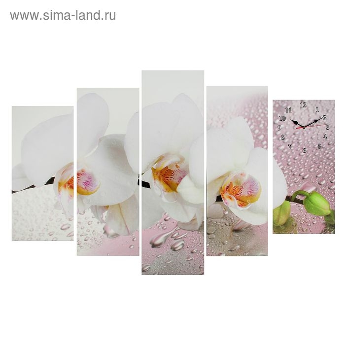 Часы настенные, модульные, серия: Цветы, "Белая орхидея", 80х140 см