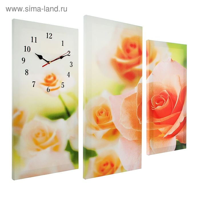 Часы настенные, модульные, серия: Цветы, "Розовые розы", 60х80см