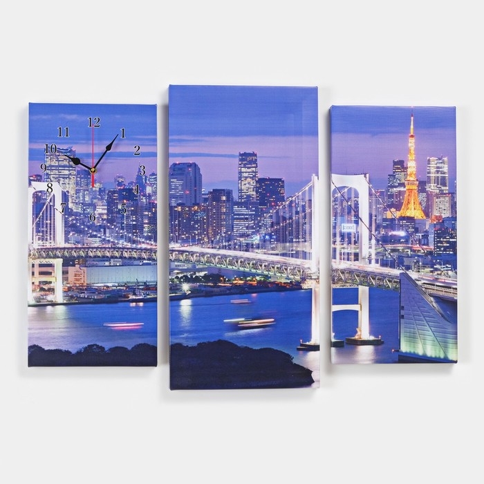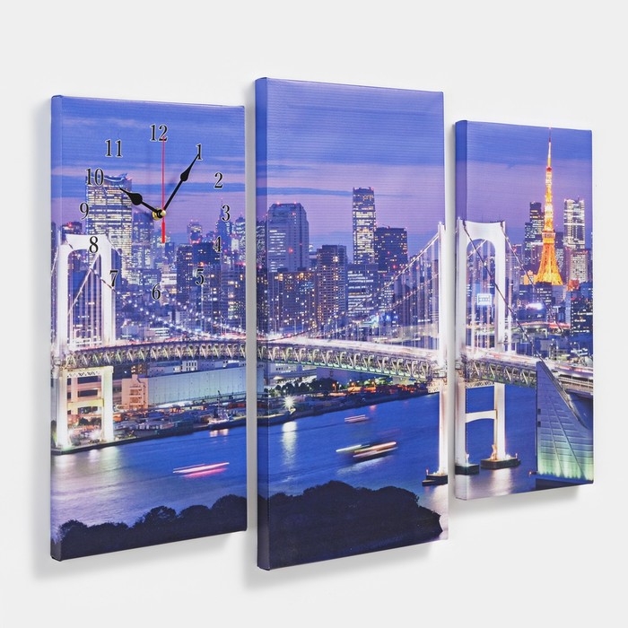 Часы настенные, модульные, серия: Город, "Светящийся мост", 60х80 см