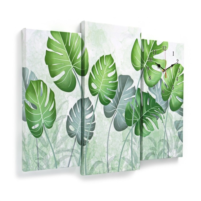 Часы-картина настенные, модульные "Перья", бесшумные, 60 х 80 см, триптих