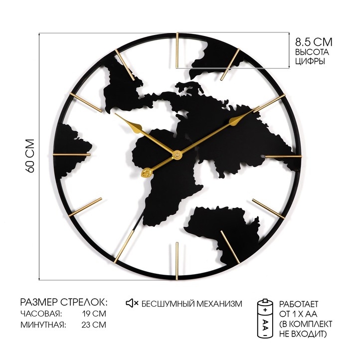 Часы настенные, серия: Лофт, "Карта мира", плавный ход, 1АА, d-60 см