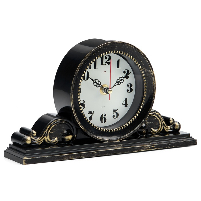 Часы настольные, интерьерные "Милица", бесшумные, d-9.5 см, корпус чёрный с золотом