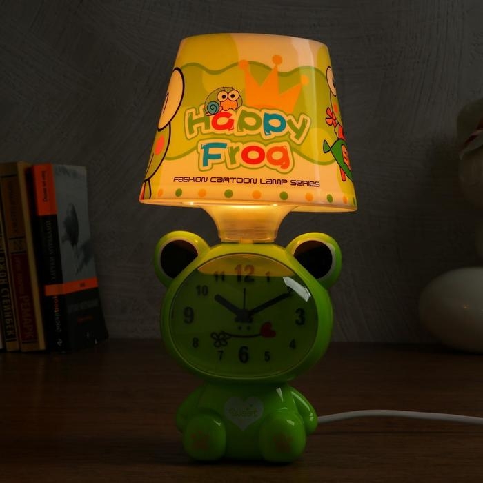 Часы-светильник "Весёлая лягушка", с будильником, дискретный ход