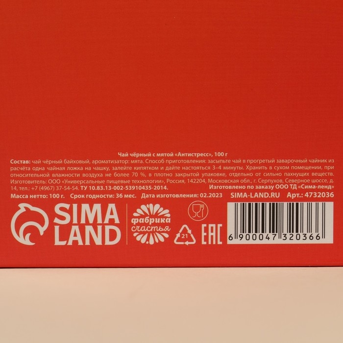 Чай чёрный «Антистресс», со вкусом мяты, 100 г.
