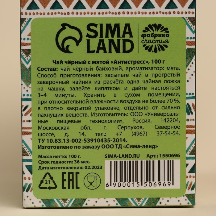 Чай чёрный «Антистресс», вкус: мята, 100 г.