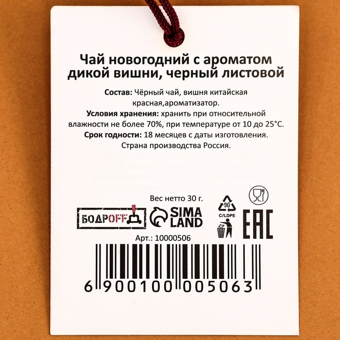 Чай чёрный «Подарок от Деда Мороза», вкус: чабрец, 20 г.