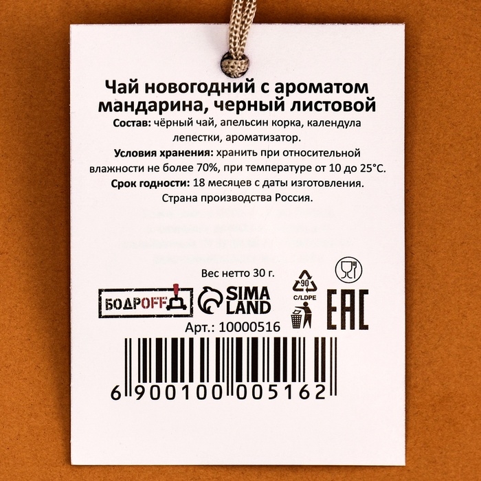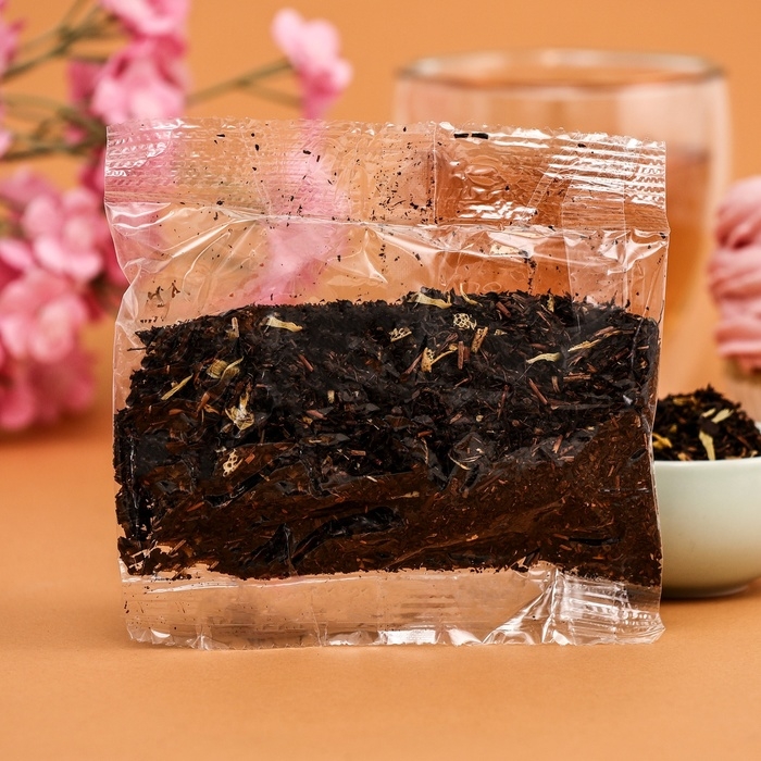 Чай упакован в небольшой мешочек с поздравительной открыткой, благодаря чему Вы сможете удивить получателя подарка не только приятным напитком, но и яркой и необычной упаковкой! Чёрный чай в данном подарочном наборе произведен с использованием самых свежих и отборных листьев чайных кустов.