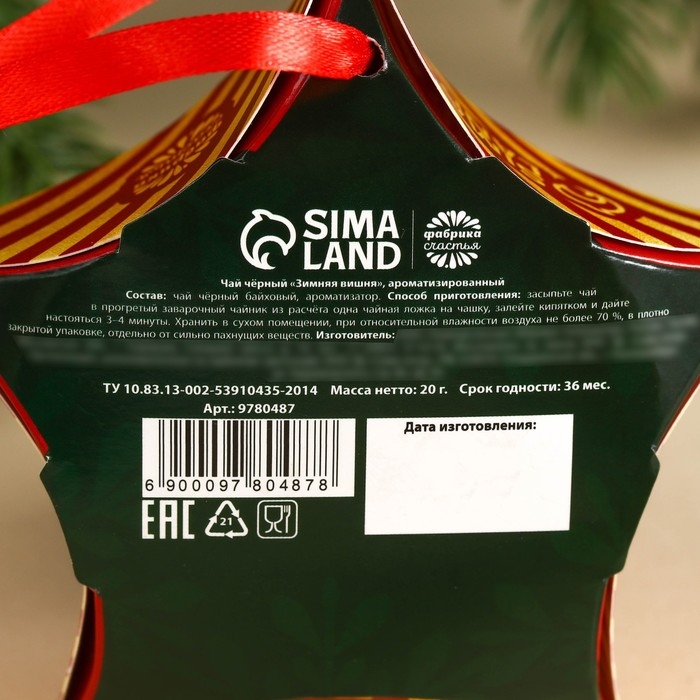 Чай чёрный «Мечты сбудутся в Новом году», вкус: зимняя вишня, 20 г.
