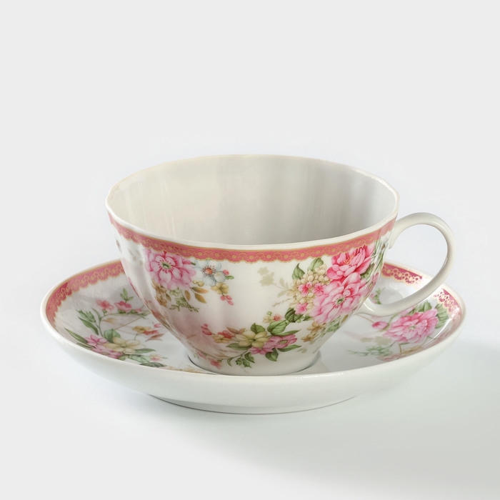 Чайная пара фарфоровая «Цветочный вальс», 275 мл