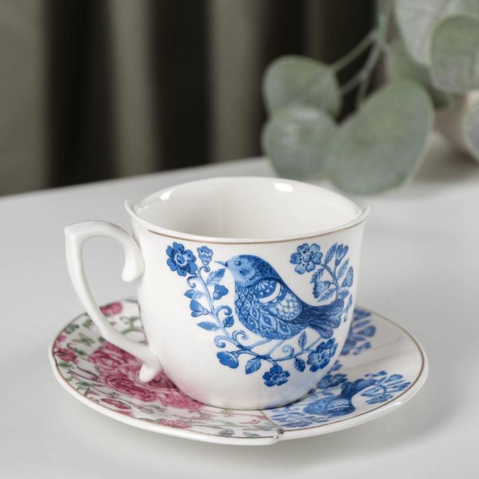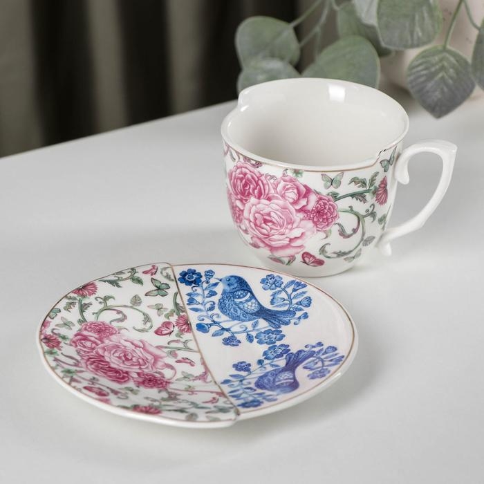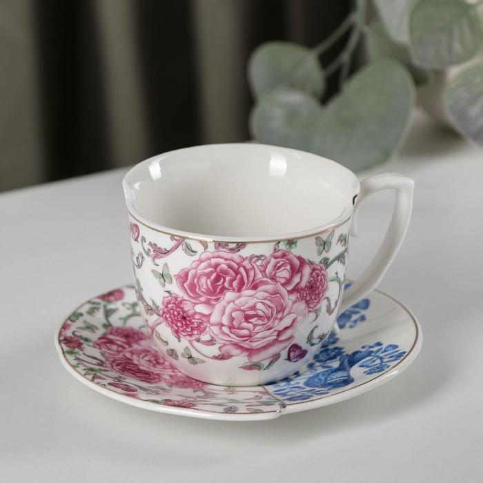Чайная пара фарфоровая «Дабл», чашка 240 мл, блюдце d=13,5 см