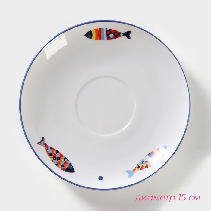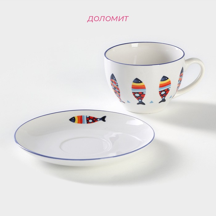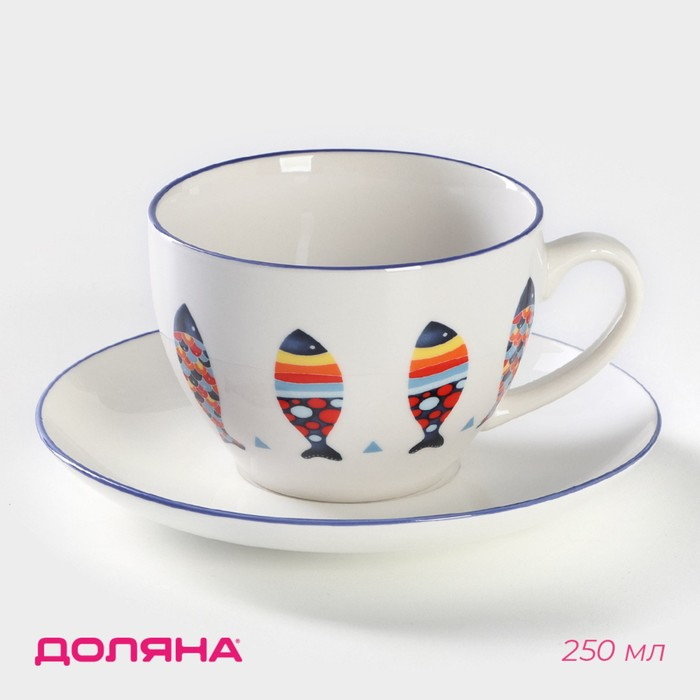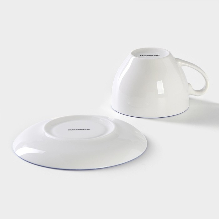 Чайная пара фарфоровая Доляна «Емеля», 2 предмета: чашка 250 мл, блюдце d=15 см, цвет белый