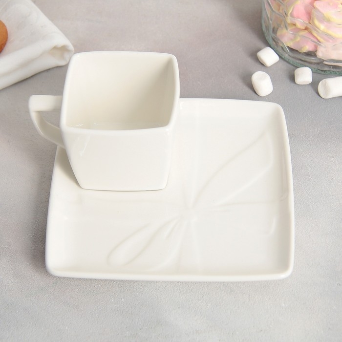 Чайная пара керамическая «Белый подарок», кружка 150 мл, блюдце 15.5х15.5 см, цвет белый
