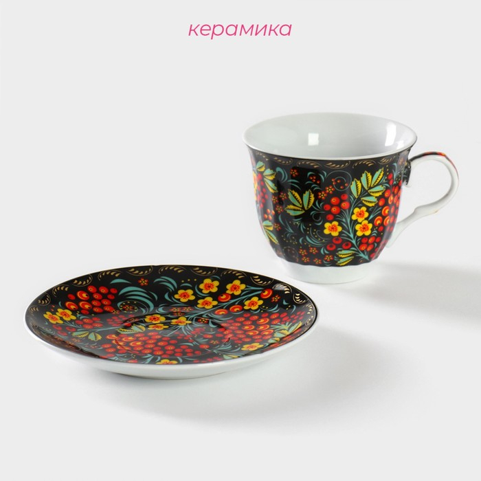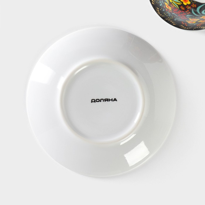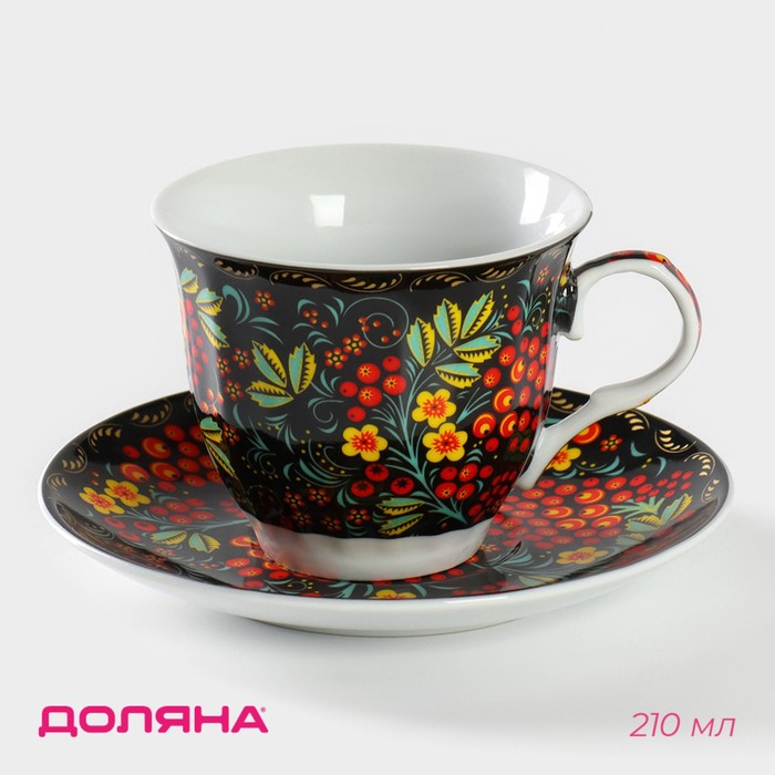 Чайная пара керамическая Доляна «Хохлома», 2 предмета: чашка 210 мл, блюдце d=14,2 см