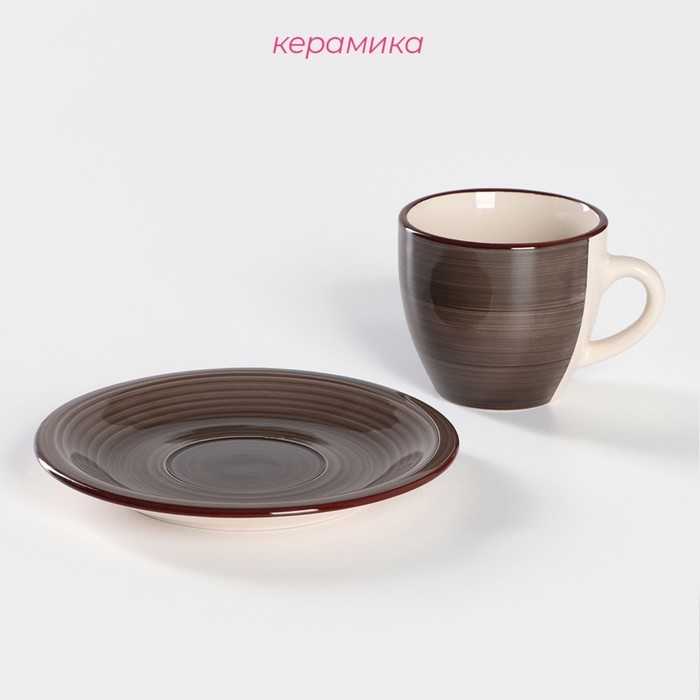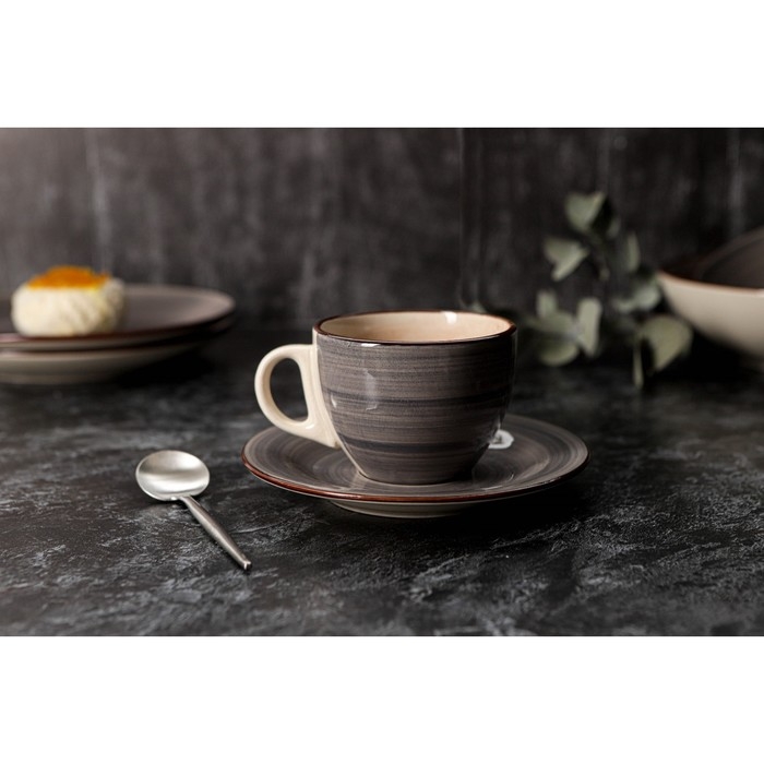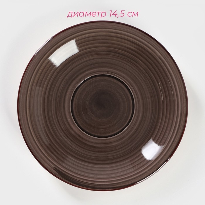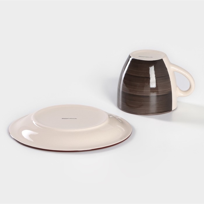 Чайная пара керамическая Доляна «Морской мир», 2 предмета: чашка 200 мл, блюдце d=14,5 см, цвет коричневый