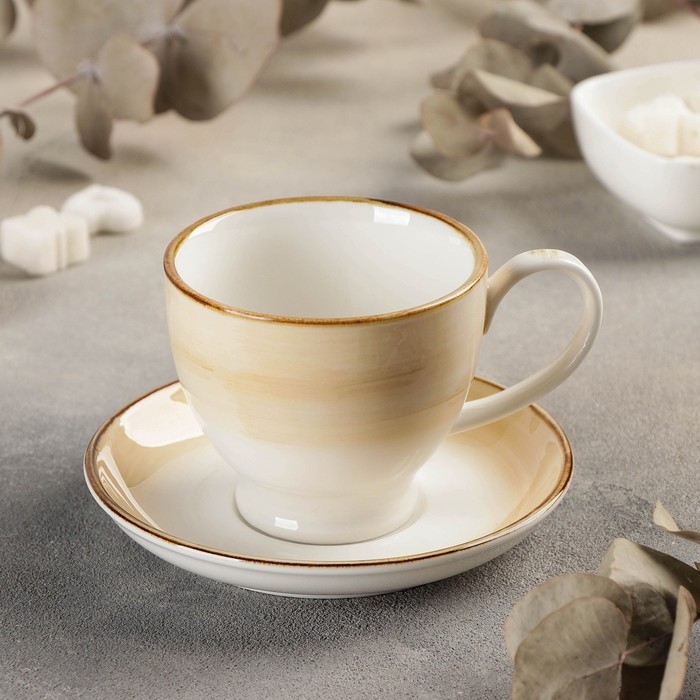 Чайная пара керамическая «Гелакси», 2 предмета: чашка 200 мл, блюдце d=13 см, цвет бежевый
