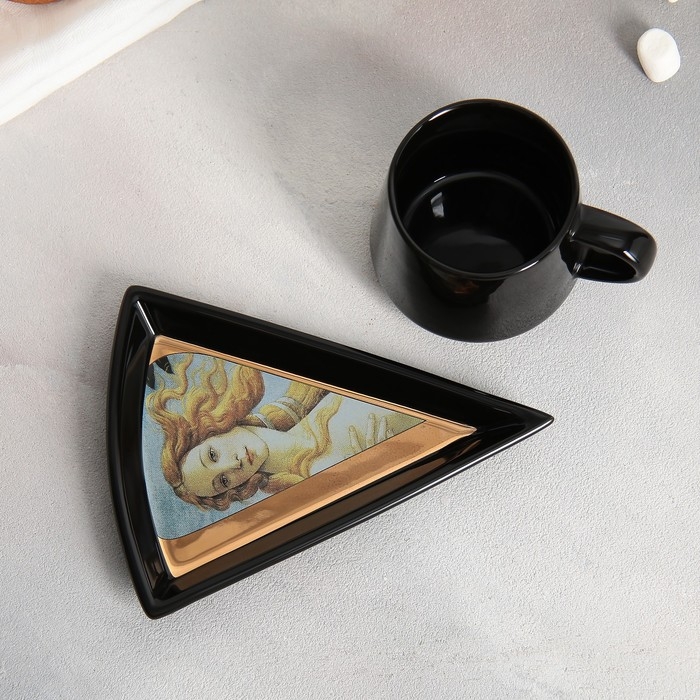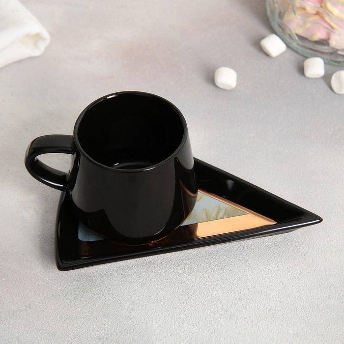 Чайная пара керамическая «Искусство», кружка 130 мл, блюдце 11х14.5 см, цвет чёрный