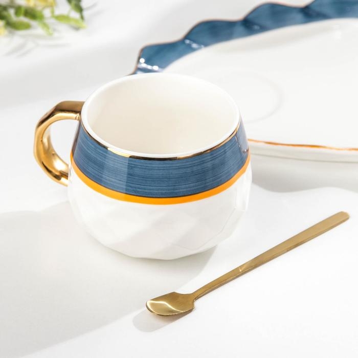 Чайная пара керамическая с ложкой «Аврора», 2 предмета: чашка 250 мл, тарелка 21×17×2 см