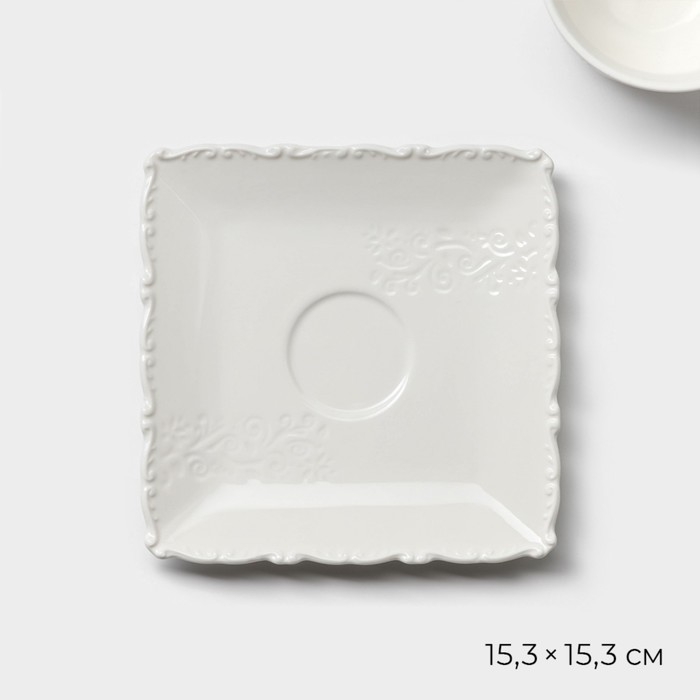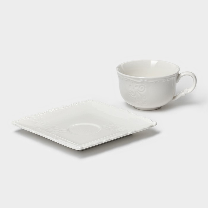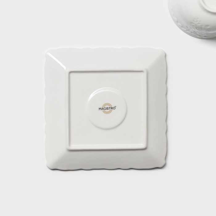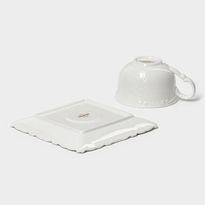 Чайная пара фарфоровая Magistro Rodos, 2 предмета: чашка 220 мл, блюдце d=15 см, цвет белый