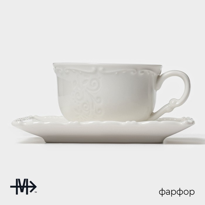 Чайная пара фарфоровая Magistro Argos, 2 предмета: чашка 220 мл, блюдце d=15 см, цвет белый