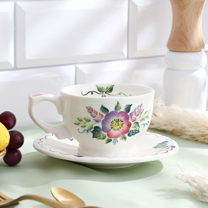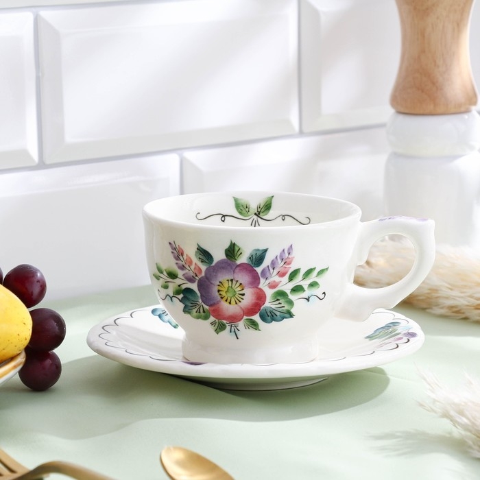 Чайная пара «Шиповник», 0,29 л, 15×8,4 см, 1 сорт, Гурова В.П.