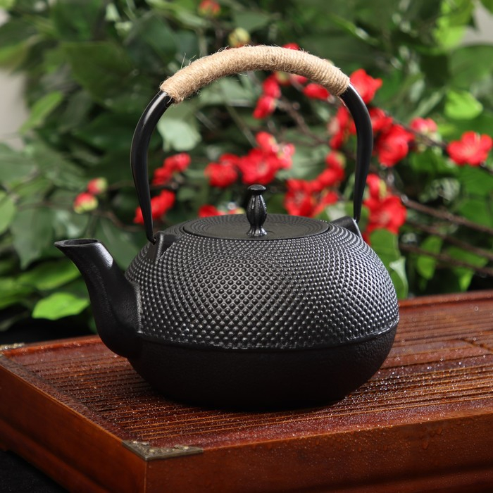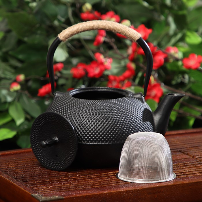 Чайник для плиты чугунный Доляна «Восточная ночь», 1,6 л, с ситом, цвет чёрный