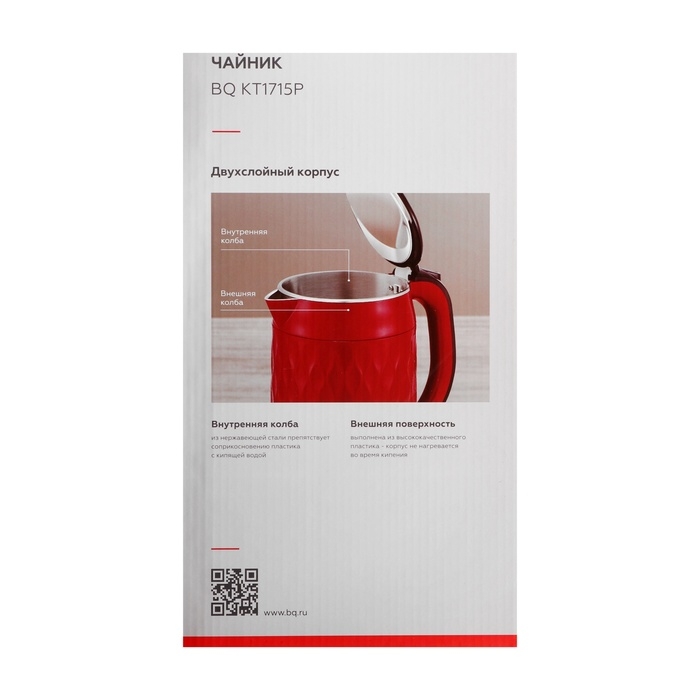 Чайник электрический BQ KT1715P, пластик, колба металл, 1.7 л, 1800 Вт, белый