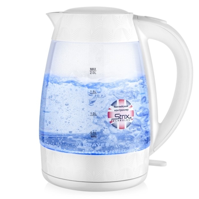 Чайник электрический BRAYER 1024BR-BK, стекло, 2 л, 2200 Вт, белый