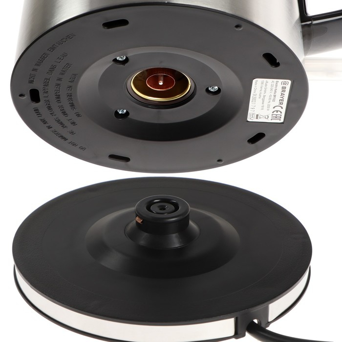Чайник электрический BRAYER BR1022, металл, 1.7 л, 2200 Вт, термометр, серебристый