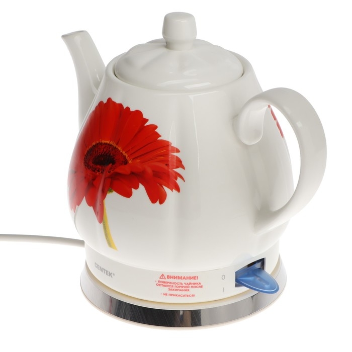Чайник электрический Centek CT-0062, керамика, 2 л, 2000 Вт, "гербера"