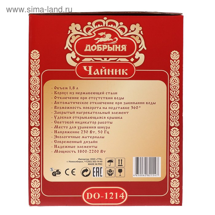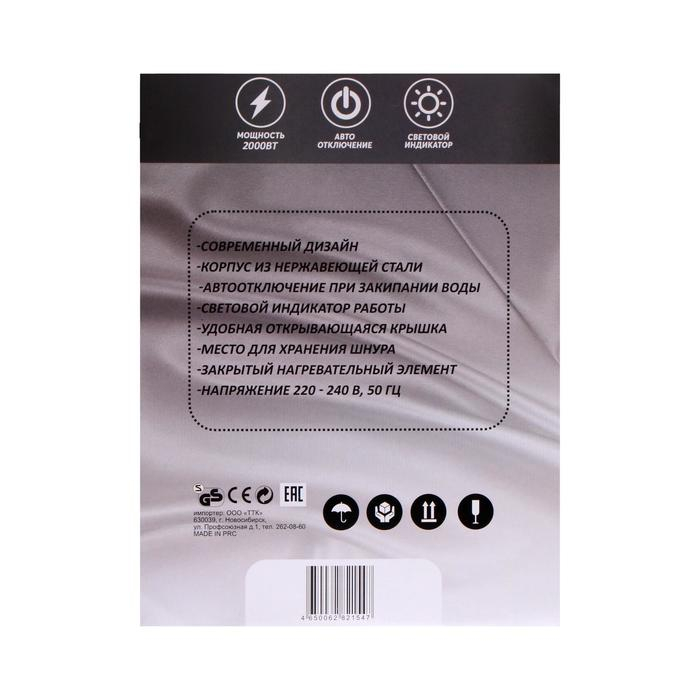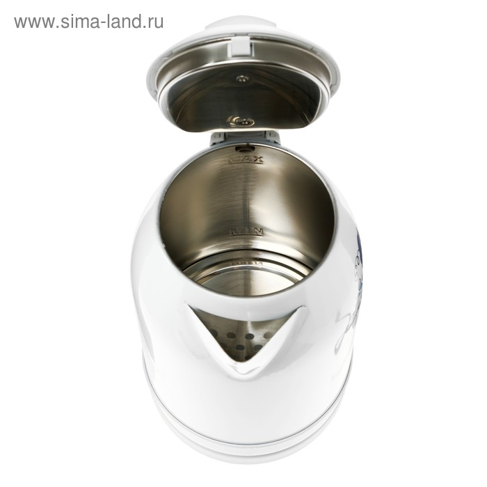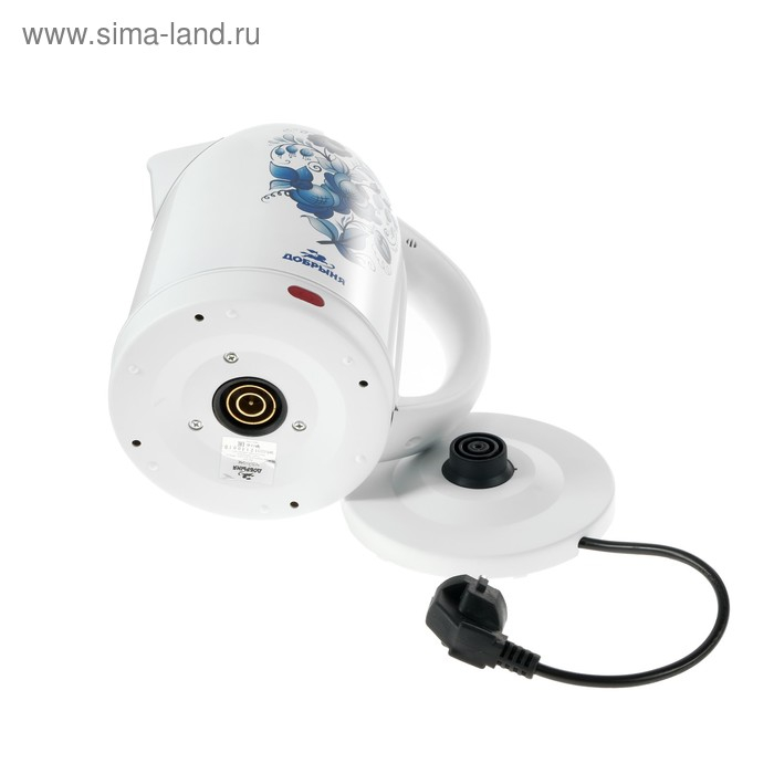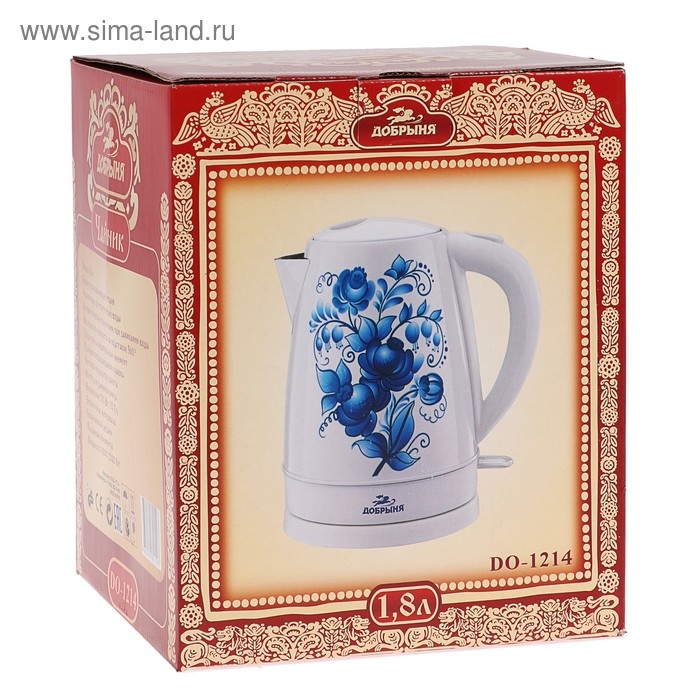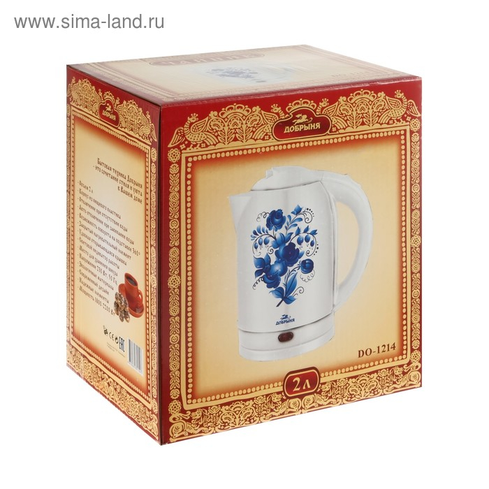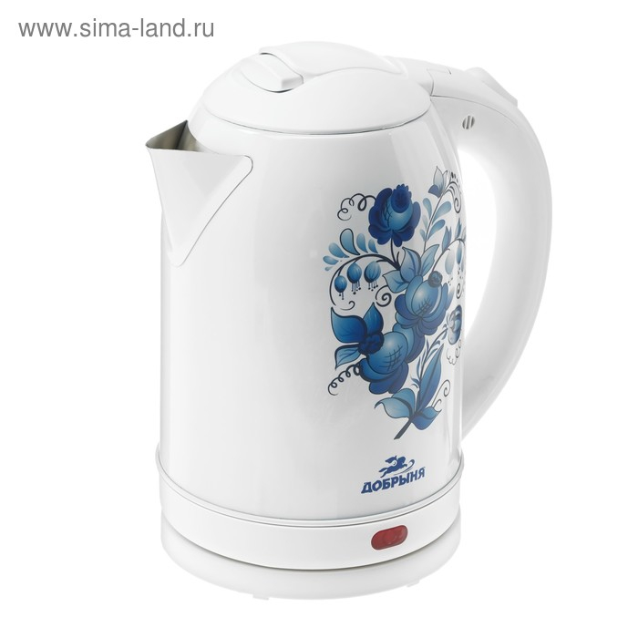 Чайник электрический "Добрыня" DO-1214, металл, 2 л, 2000 Вт, белый с синими цветами