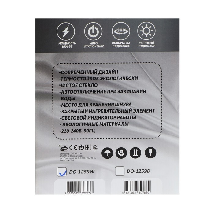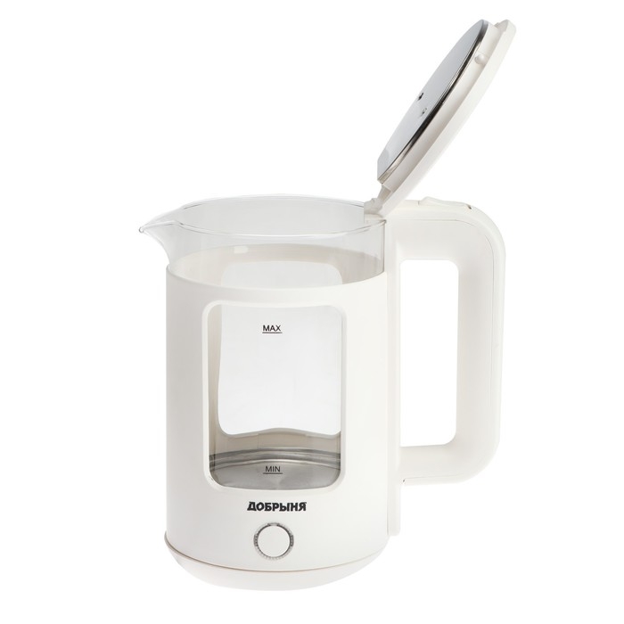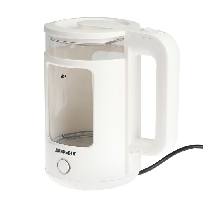 Чайник электрический "Добрыня" DO-1259W, стекло, 1.5 л, 1800 Вт, белый