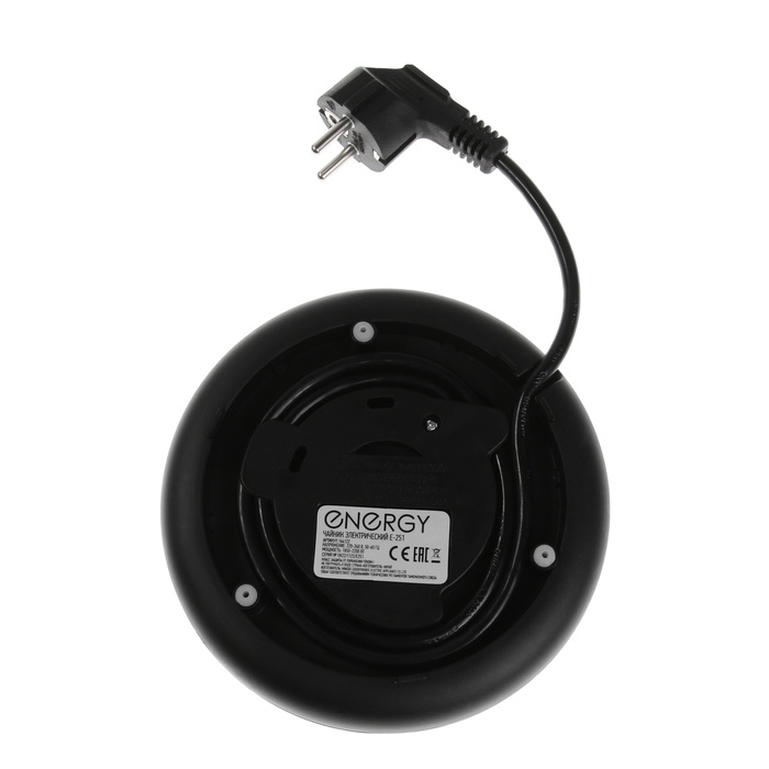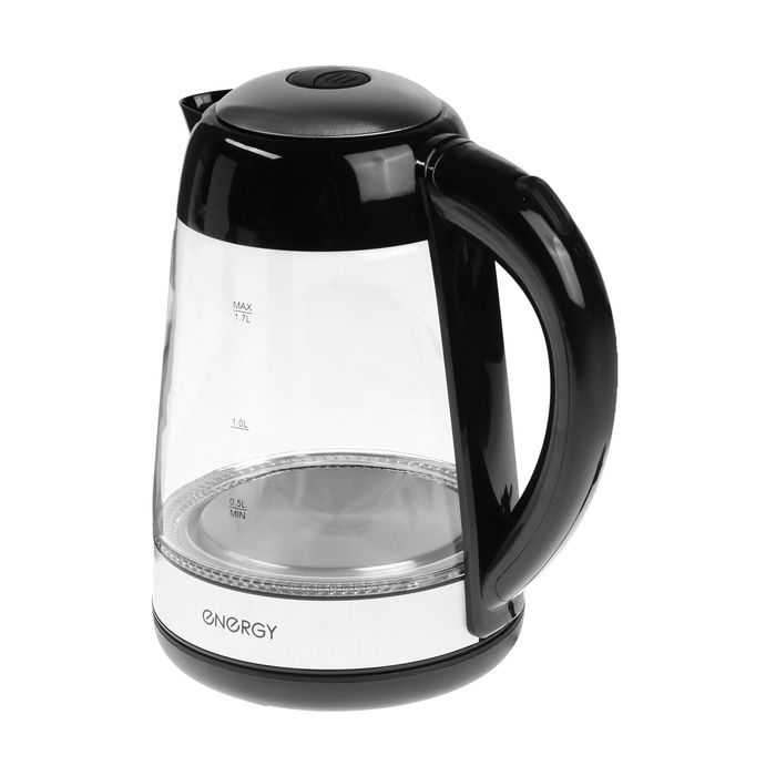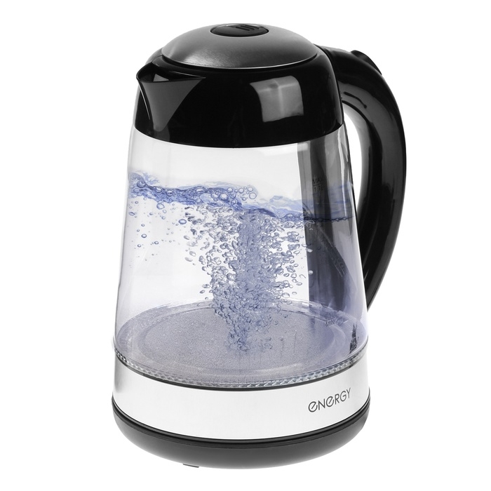 Чайник электрический ENERGY E-251, стекло, 1.7 л, 2200 Вт, чёрно-серебристый