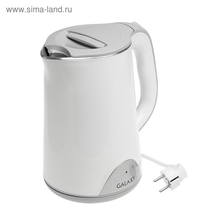 Чайник электрический Galaxy GL 0301, пластик, колба металл, 1.5 л, 2000 Вт, белый