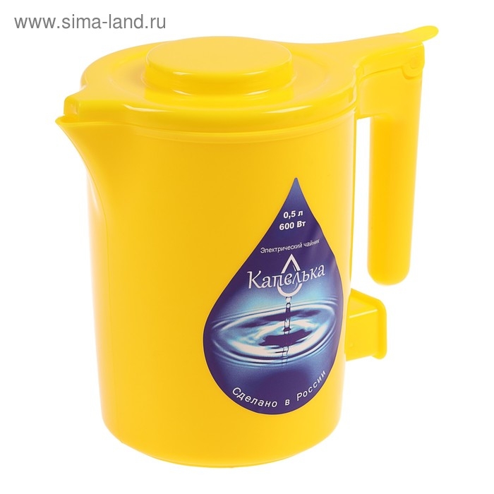 Чайник электрический "Капелька", пластик, 0.5 л, 600 Вт, желтый