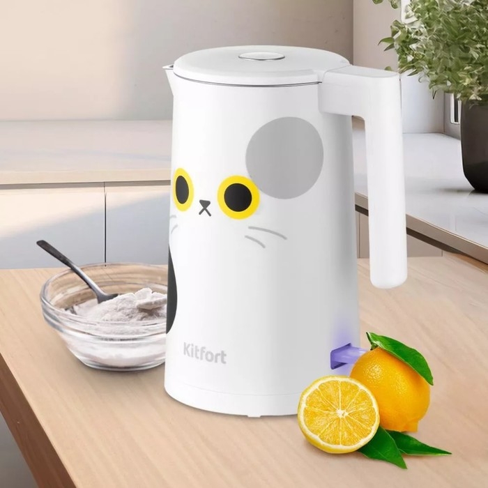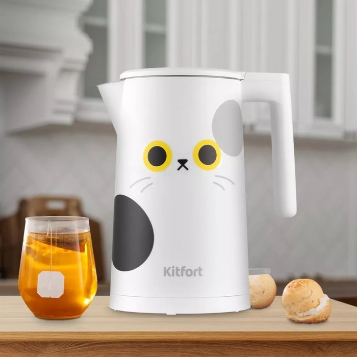 Чайник электрический Kitfort КТ-6185, металл, 1.7 л, 2200 Вт, белый
