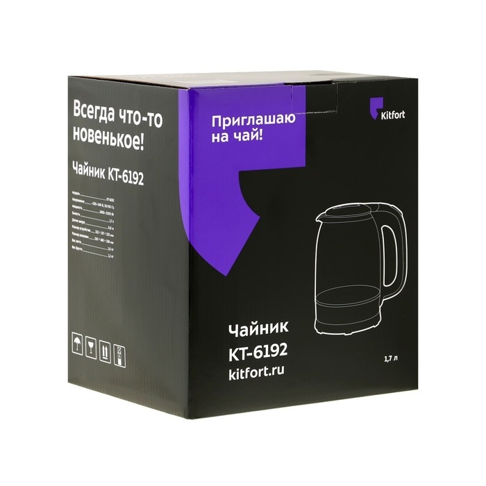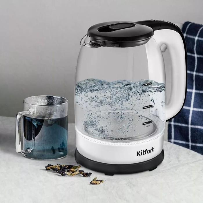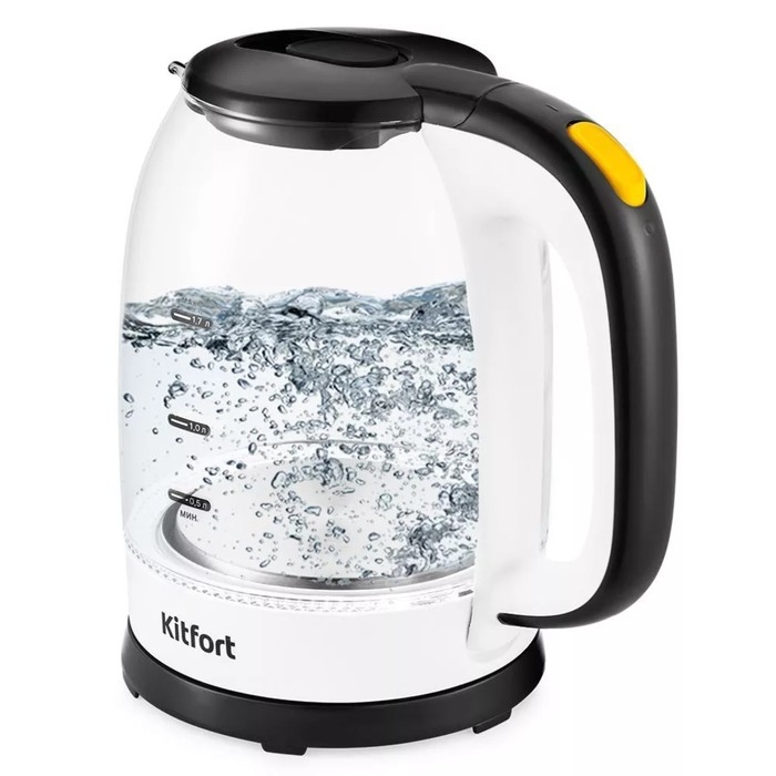 Чайник электрический Kitfort KT-6192, стекло, 1.7 л, 1850-2200 Вт, бело-чёрный