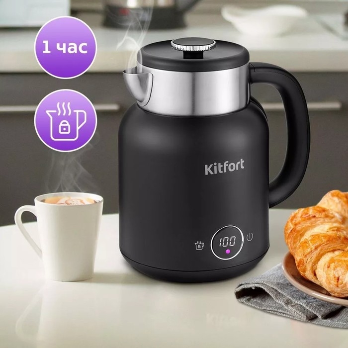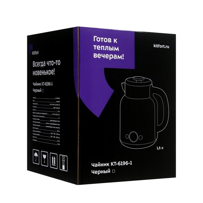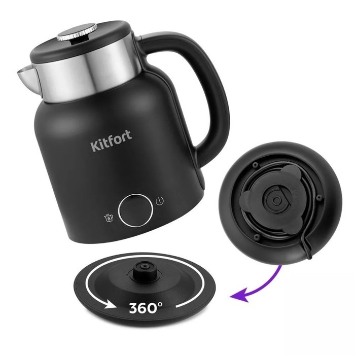 Чайник электрический Kitfort KT-6196-1, металл, 1.5 л, 2200 Вт, чёрный