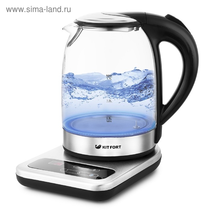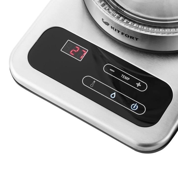 Чайник электрический Kitfort КТ-657, стекло, 1.7 л, 2200 Вт, регулировка t°, серебристый