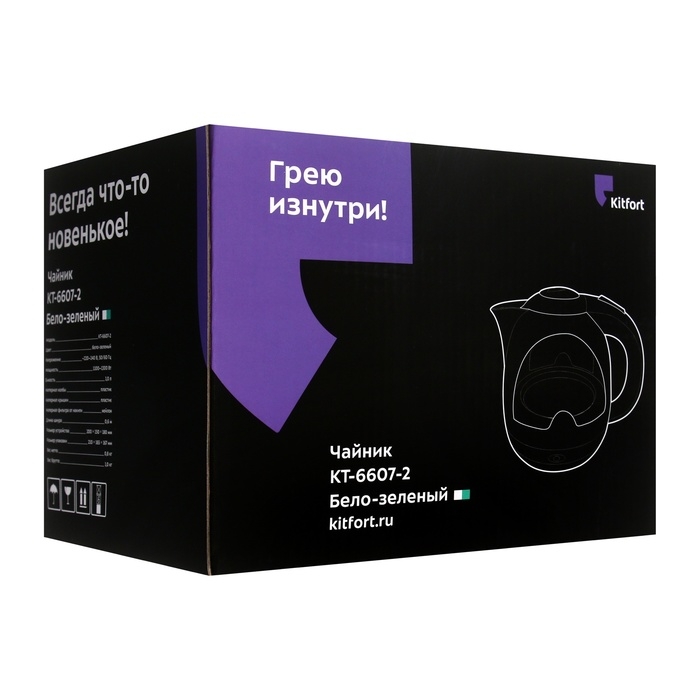 Чайник электрический Kitfort КТ-6607-2, пластик, 1 л, 1300 Вт, бело-зелёный