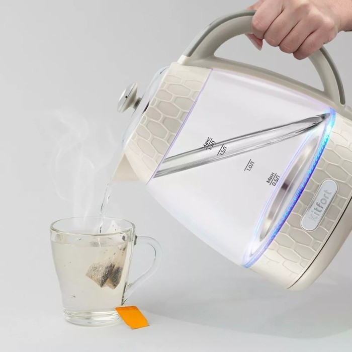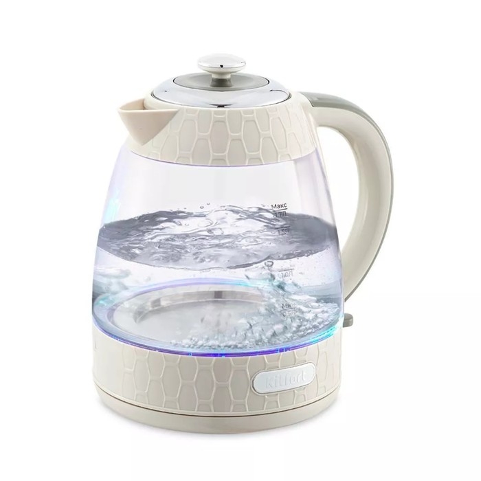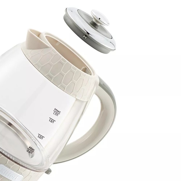 Чайник электрический Kitfort КТ-6622, стекло, 1.7 л, 2200 Вт, бежевый