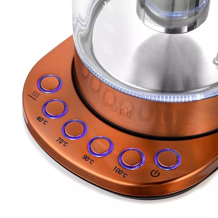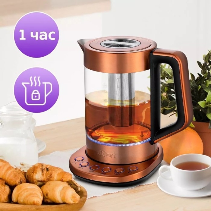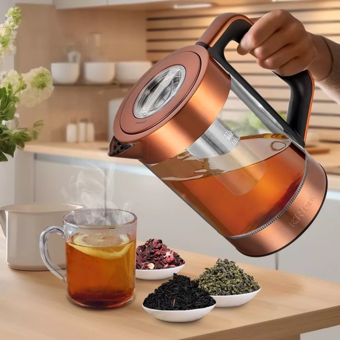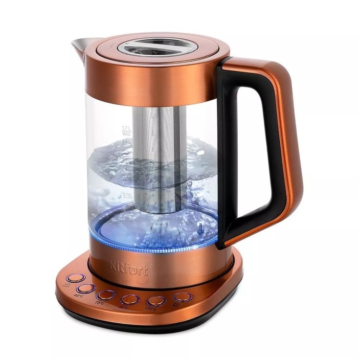 Чайник электрический Kitfort КТ-6655, стекло, 1.7 л, 2200 Вт, цвет медь