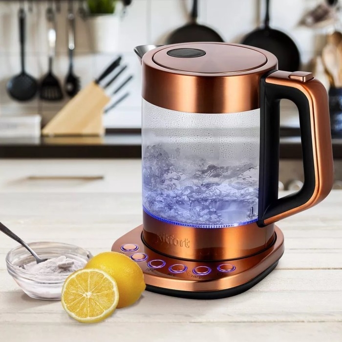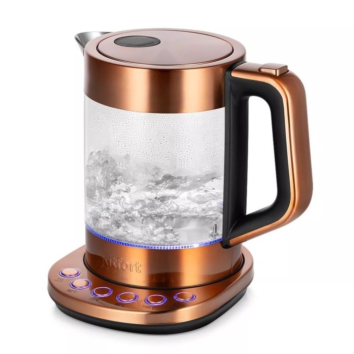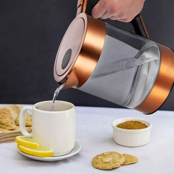 Чайник электрический Kitfort КТ-6657, стекло, 1.5 л, 2200 Вт, цвет медь