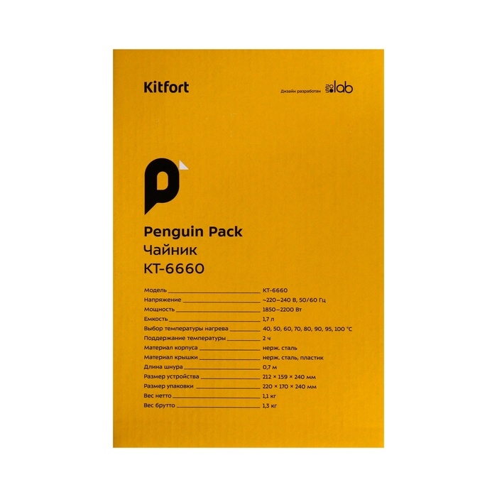 Чайник электрический Kitfort КТ-6660, металл, 1,7 л, 2200 Вт, LED-дисплей, серебристый