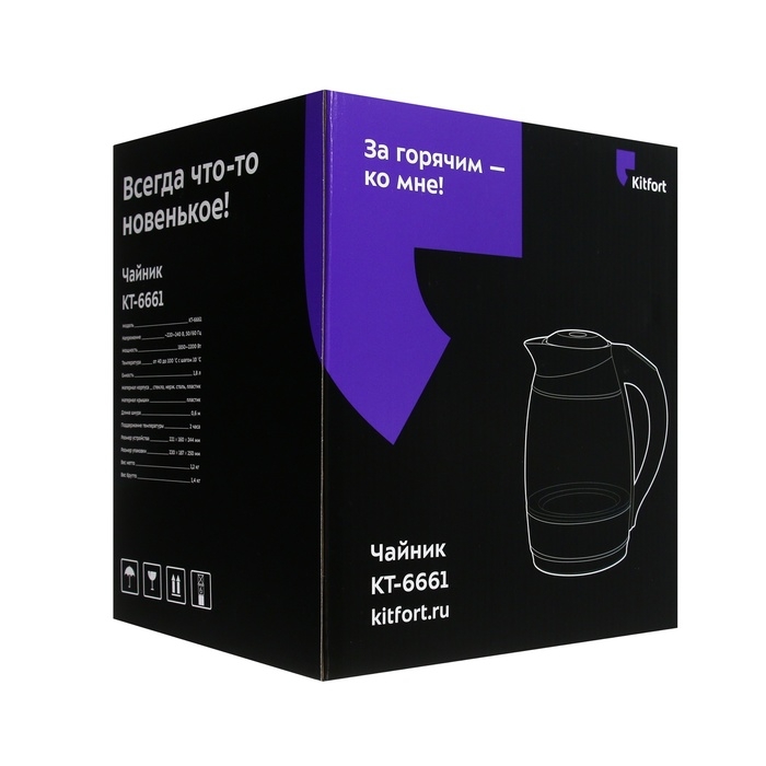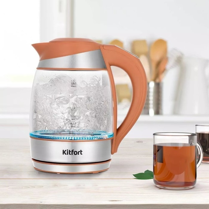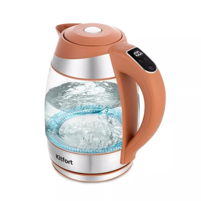 Чайник электрический Kitfort КТ-6661, стекло, 1.8 л, 2200 Вт, коричневый