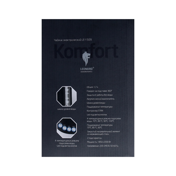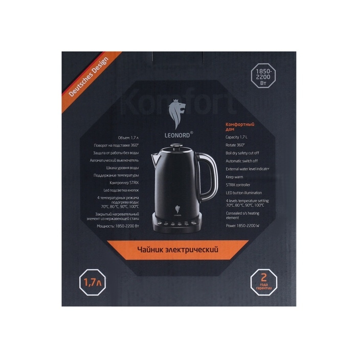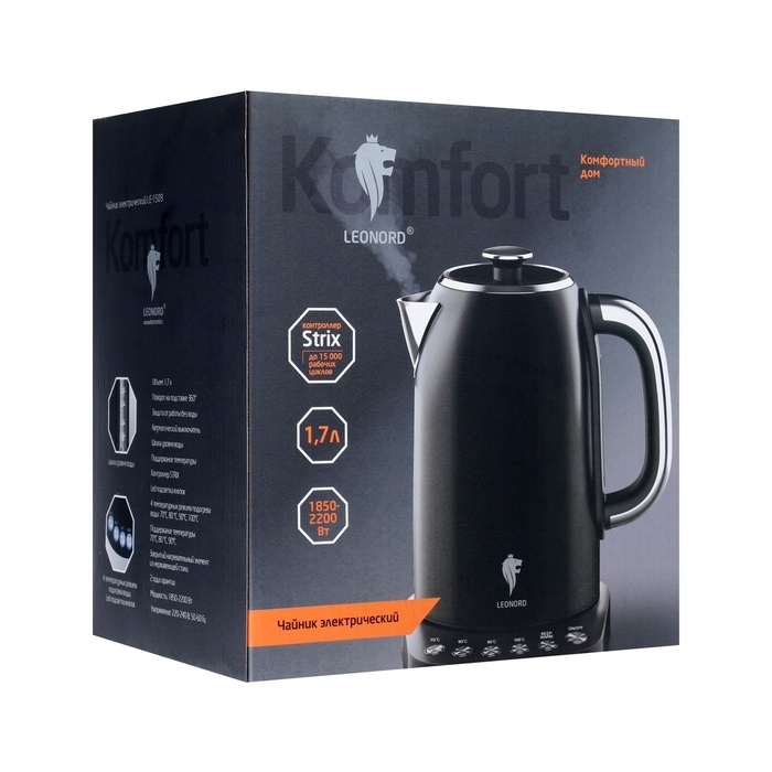 Чайник электрический Leonord LE-1509, металл, 1.7 л, 2200 Вт, чёрный