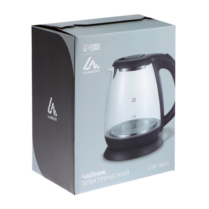 Чайник электрический Luazon LSK-1810, стекло, 1.8 л, 1500 Вт, подсветка, черный